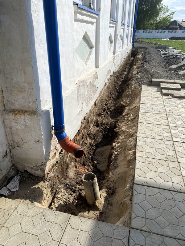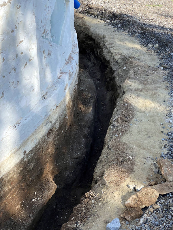 Наш храм был построен в самом начале IXX века, освящен в 1809 году. За 212 лет культурный слой поднялся на 85 сантиметров, и погрузил здание храма в сырую землю. Влажность из почвы начала разрушать стены. Кирпичная кладка мокнет и находится в агрессивной среде. Поэтому мы откапываем храм, чтобы создать гидроизоляционно-технологический промежуток между кирпичной кладкой и грунтом. Если этого не сделать, то храм может покоситься.